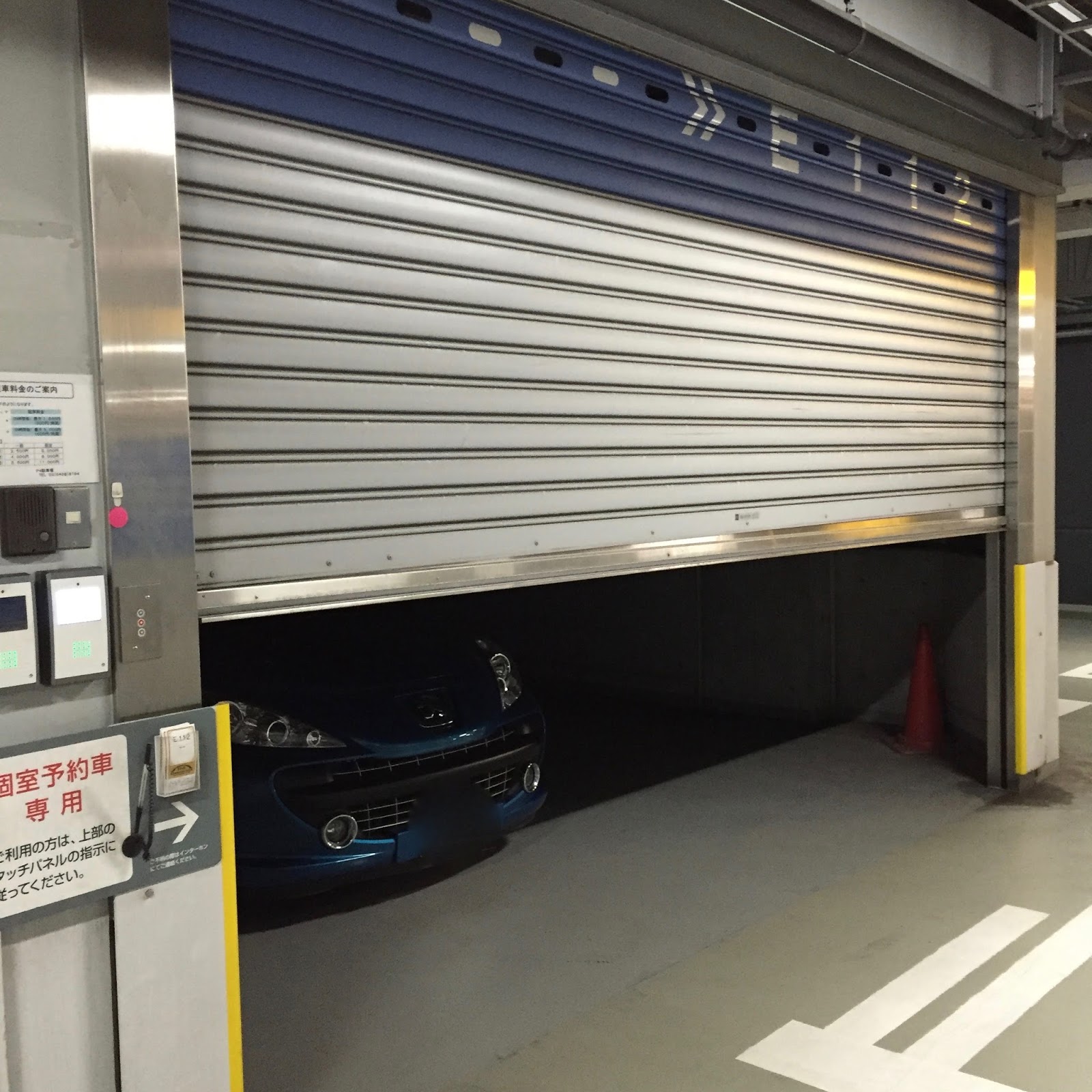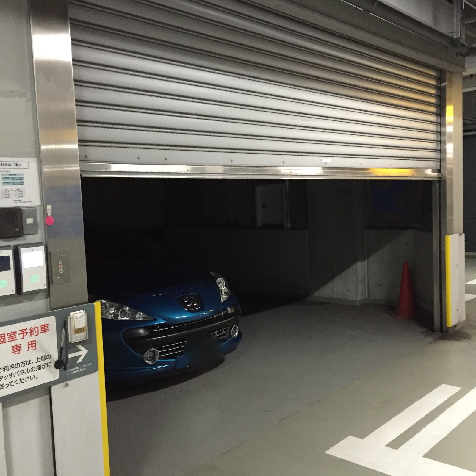 駐車して荷物を持ったあと、係員の方が再びパネルを操作してシャッターを閉めてくれました。