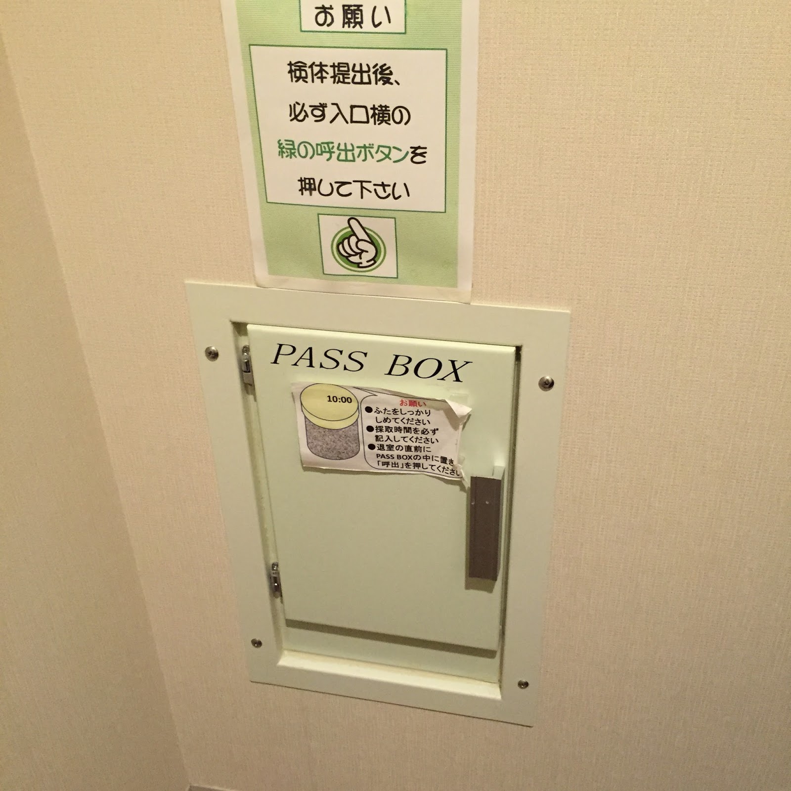 この容器に採取した精液は、椅子の後ろにある小さい扉からそのまま検査の方に渡すことができます。