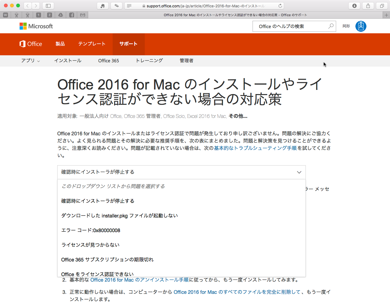 急いでExcel使いたかったので、右上の「Office 2016をインストールする」ボタンをクリックしてOffice 2016のインストーラーをダウンロード。