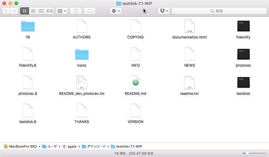 この中のphotorecをターミナルから起動します。